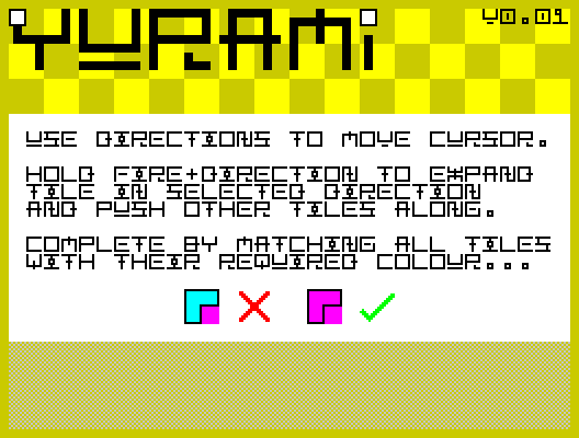Back nearly 10 years ago, in 2016, I wrote this game for iOS devices, but have been recently been wondering if it could work just as well as a Spectrum game. The images would have to be of a lower resolution, and there's the colour restrictions imposed by the machine, but other than that I think it does pretty well as a distraction. There are some simple tutorial levels at the start, but the later ones can take quite a while to work out.